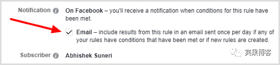 Facebook将在满足规则条件并触发操作时向您发送通知。此外,您还可以选择通过电子邮件接收通知。