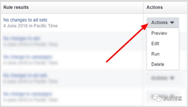 使用每个规则右侧的“操作”下拉菜单,您可以预览,编辑,运行或删除规则。如果选择“预览”,则可以运行规则以查看将受影响的广告系列的预览。