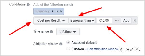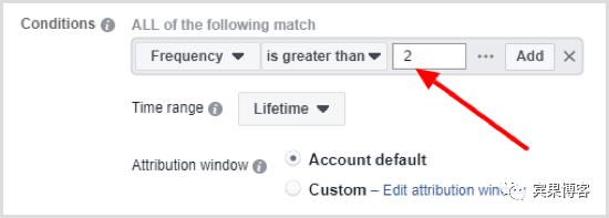 为了说明,您可以将频率条件与每个结果条件相结合。将频率限制为2将有助于阻止广告疲劳,但只要期望的结果低于目标成本,让广告运行就没有问题。这也意味着观众有更多的广告容忍度。