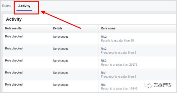 提示:如果您管理多个Facebook自动规则,则可以每天在“活动”选项卡上检查所有规则的活动,然后根据前一天所做的更改对自动规则进行必要的更改。