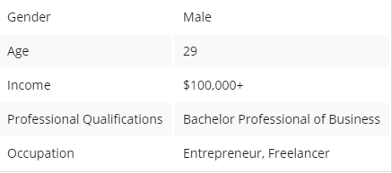 男性、29岁、收入10万+、硕士、企业家/自由职业者;