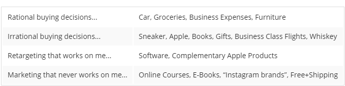 接着就思考两个问题:为什么要购买这些产品?为什么要在这些产品上花这么多钱呢?Tim给出了如下的答案: