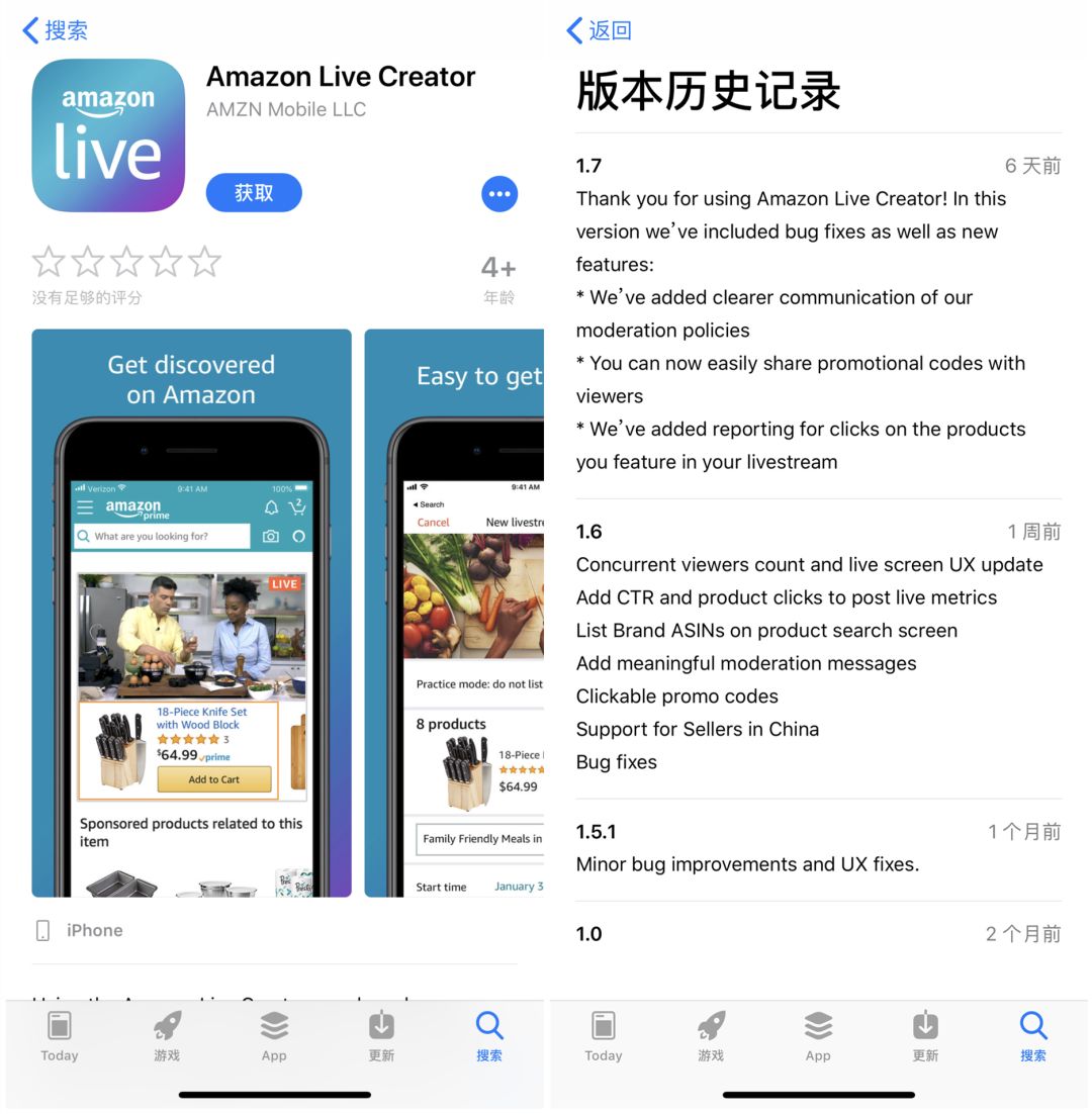 前几天移动应用程序端Amazon Live Creator 更新了版本,使用Amazon live Creator,可以播放amazon.com和亚马逊移动应用程序上的品牌商家或自制商品相关的视频,并实时与购物者互动,但目前移动端仅推出了IOS版本。
