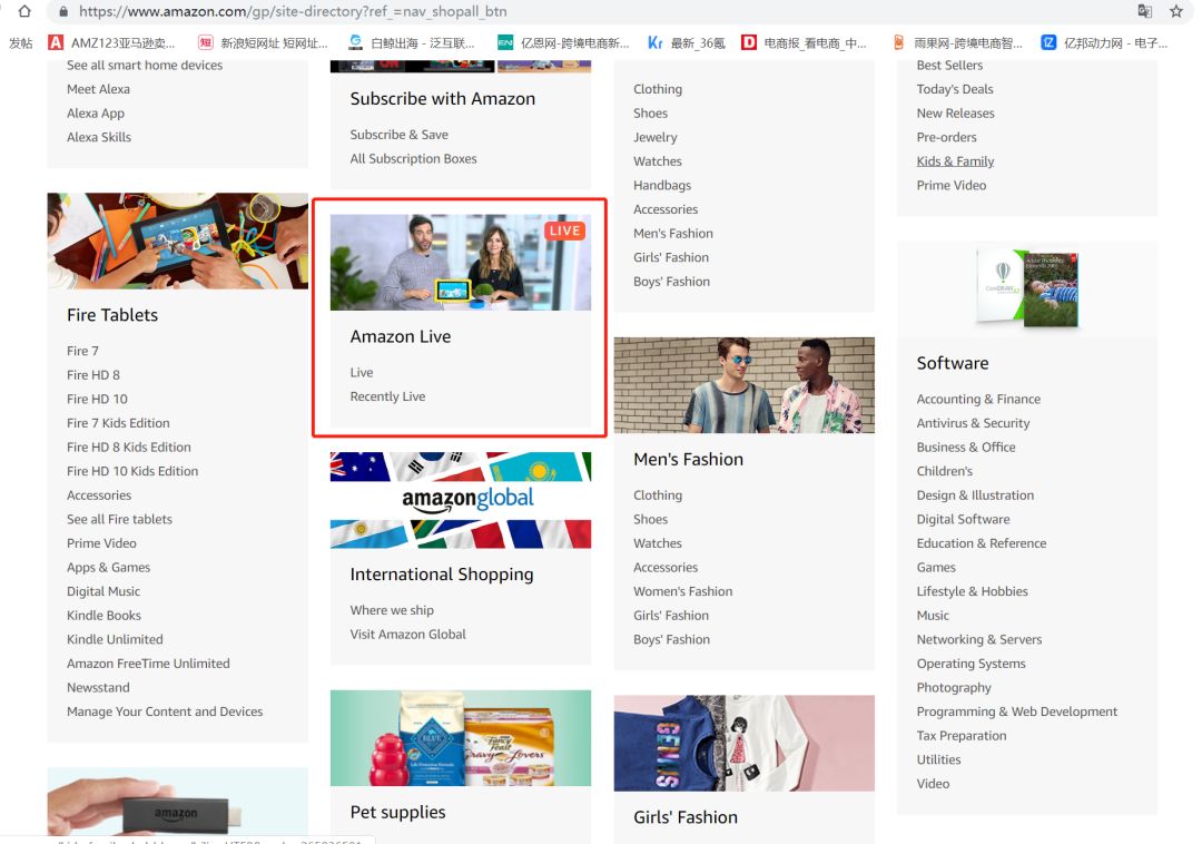 下方是美国站Amazon Live 模块的入口,在网站的位置并不明显