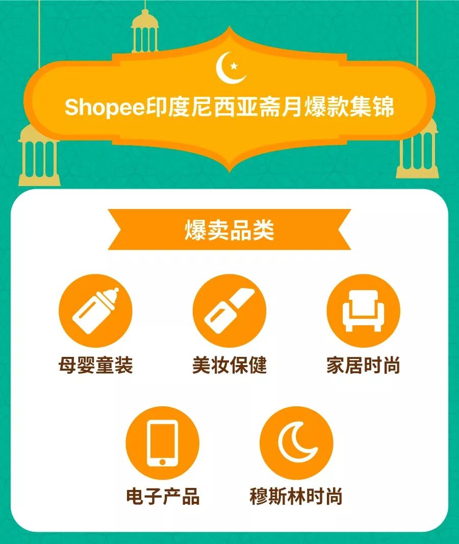 Shopee印度尼西亚和马来西亚市场最盛大的电商节日斋月大促即将来袭!斋月期间,穆斯林会返乡与家人团聚,置办新衣、装饰屋子、走亲访友,期间产生大量消费需求,其中时尚品类销量涨幅最高。印度尼西亚和马来西亚的企业通常会在斋月前为员工发放年度奖金,消费者的购买力进一步提升,推动电商销售额激增。