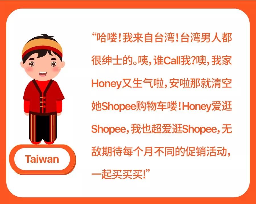 虔诚真诚印尼男神,厨艺高超马来西亚男神,酷炫潜水菲律宾男神,贴心绅士台湾男神,可爱阳光泰国男神,运动热血越南男神,强壮帅气新加坡男神!七大市场七大特色,不同人群喜好各异,但有同一个爱好——上Shopee,买买买!