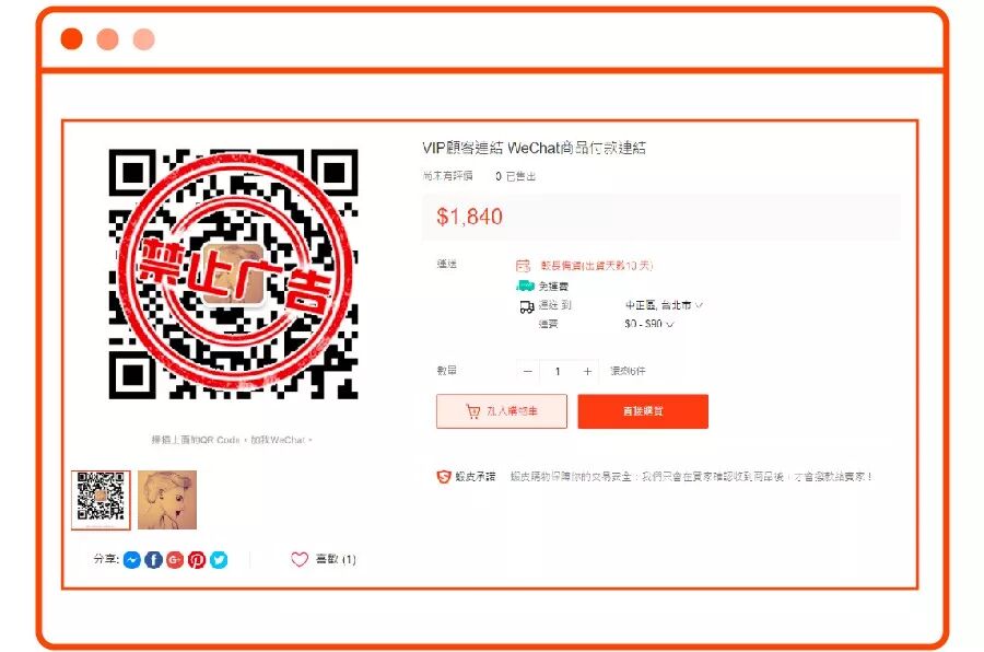 该商品为微信商品付款链接服务,图片为卖家微信二维码,该行为违反了Shopee商品刊登规范。
