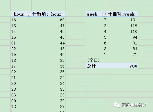 14:总结两个透视表,得出结论,美国时间 周日的下午16点 为最佳LD时间,其次是周二的下午16点。 以此类推……