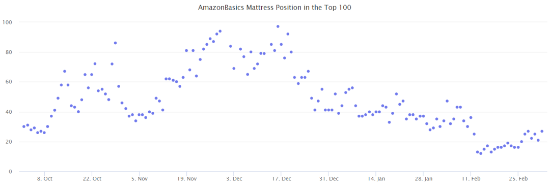 此外,数据显示,AmazonBasics并没有破坏床垫品类的平衡。Zinus、Signature Sleep、Linenspa和Night Therapy等品牌已经在经济实惠的床垫产品上取得了成功,并继续占据主导地位。亚马逊床垫最近开始受欢迎,但它不会在一段时间内取代品类领头羊,因为这些领导品牌都有与亚马逊类似的价格点和成千上万的好评。在这种情况下,亚马逊的产品并不比所有价格范围内的竞争对手更便宜或更好。
