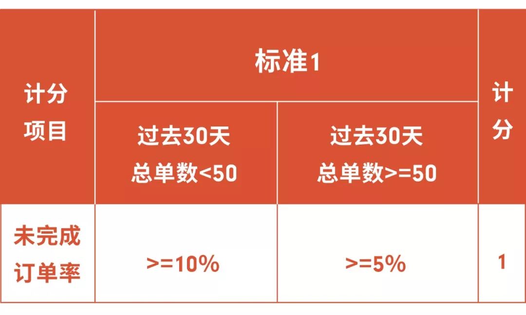 小虾台湾市场店铺过去30天总订单量没有到达50单,但未完成订单率在10%及以上,Shopee将会给予1分的惩罚分。