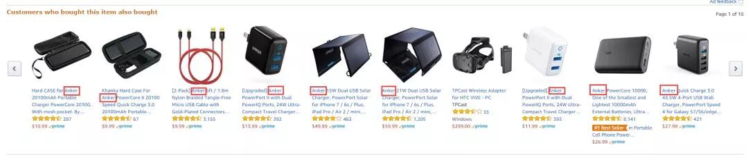 以上,通过观察我们可以发现,像Anker这样的大卖,其产品详情页之下的FBT,看了又看,买了又买乃至站内广告,大多都是自己的产品。