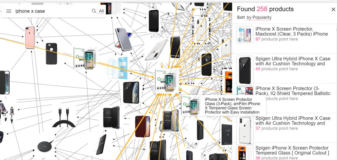 推荐给大家一个看关联流量的网站:www.yasiv.com 这个网站能够以network的形式把整个关联网络体系展现出来。大家可以看看下图,哪一个产品箭头最多的,一般都是卖的好的,因为他们有足够大的关联流量。这个网站大家可以好好研究一下,一方面可以帮助我们深刻了解产品的关联流量情况和关联流量占比, 另一方面可以用于类目深挖,方便大家做垂直选品。