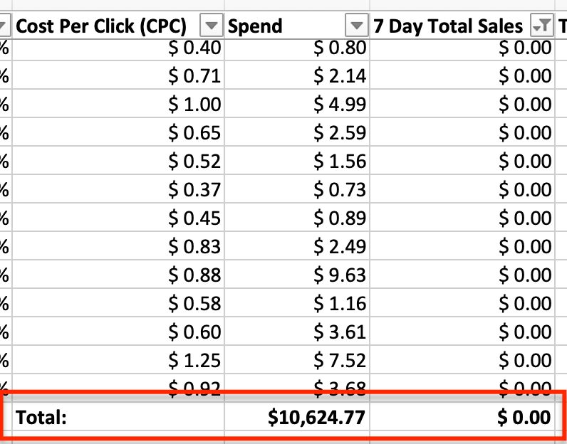 上图是未优化否定关键词的广告账号数据截屏,导致60天内浪费了10625美元,占其广告总支出的40%!