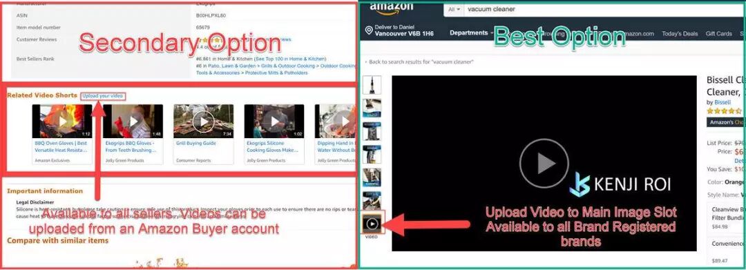 EBC可以让产品listing转化率提高5%-12%。如果你通过了亚马逊品牌备案,你还可以将视频上传到亚马逊产品详情页的主图中。虽然卖家可以将视频上传到页面中间的“Related Video Shorts(相关视频短片)”部分,但观看次数比主图少很多倍。