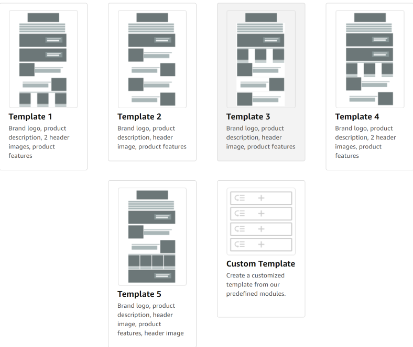 亚马逊允许你从5个模板中选择或创建自定义模板。所有图文版品牌描述必须以logo开头,然后是文本说明,你可以添加或删除最多5个模块。