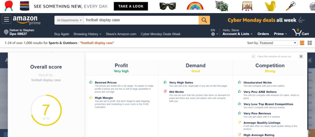 再说到刚刚Frank的例子。Frank找到自己熟悉的产品并在产品调研工具的帮助下得知橄榄球展示盒是个有潜力的利基产品。