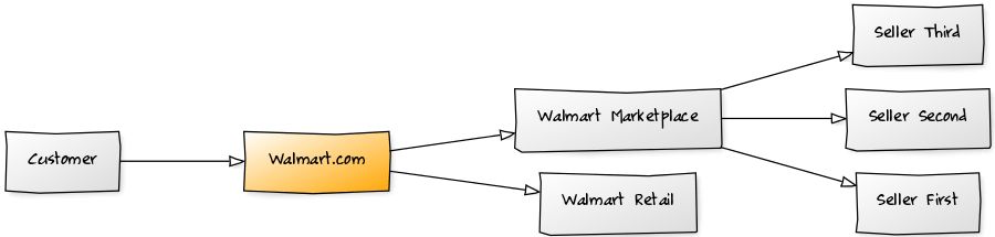 然而,消费者在沃尔玛平台上有两种不同的体验。平台让沃尔玛的品类范围扩大了,但却从未融入到沃尔玛生态系统中。在沃尔玛自营购买商品时,用户可以将商品退回任一家沃尔玛。但从平台购买商品的话则不可以。当用户对商品或价格不满意时,可以打电话给沃尔玛,但在平台上购买商品时却不行,他们必须给卖家发电子邮件。