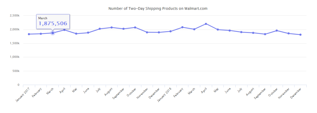 2017年,沃尔玛有200万种产品提供免费两天送货服务。但迄今为止,该数目一直未能增长。Prime服务是亚马逊的制胜武器,如果沃尔玛无法提供类似的服务与之匹敌,那么讨论沃尔玛与亚马逊电商之战谁输谁赢就没有意义了。沃尔玛没有提供类似FBA的物流服务,如果没有类似的服务,就算平台品类范围不断增长,也没办法推动两日达服务发展。