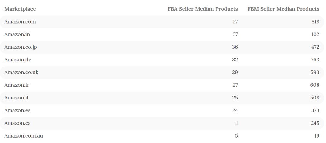 使用FBA发货的卖家平均刊登的产品数量少于自发货卖家。这是因为在使用FBA时刊登产品需要先将产品发送到亚马逊仓库。例如,许多图书卖家刊登了数十万种产品,但由于仓储费用高,很少使用FBA发货。