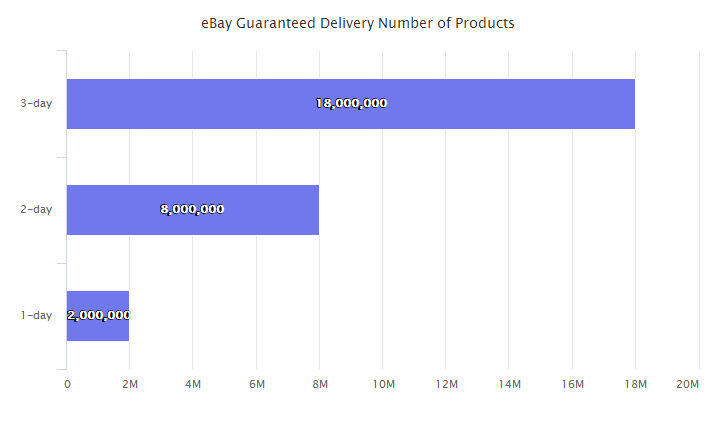 据统计,eBay美国站8亿件商品中,有1800万件商品提供3天保证送达,800万件商品提供2天保证送达,近200万件商品提供下单第第2天(1天)保证送达。