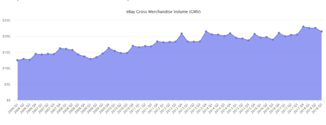 不过eBay的商品交易总额正在增长,虽说比不上美国整体电商零售额的增长。eBay经常被遗忘的一个原因是很少有品牌将其视为一个渠道。网站上出售的大多数商品都来自数以千万计的第三方卖家。这本身不是问题,但这意味着很少有品牌能像对待其他电商平台一样(特别是亚马逊),与eBay建立起联系。以下是eBay商品交易总额数据: