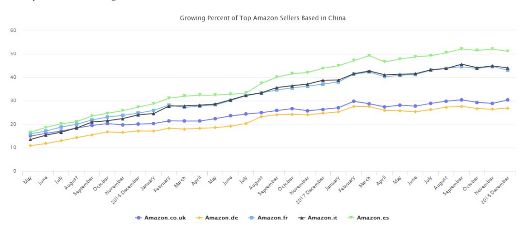 据了解,2年前,亚马逊欧洲站中国卖家比例只有15%,但在2年后,这一数字翻了一番,达到了39%。