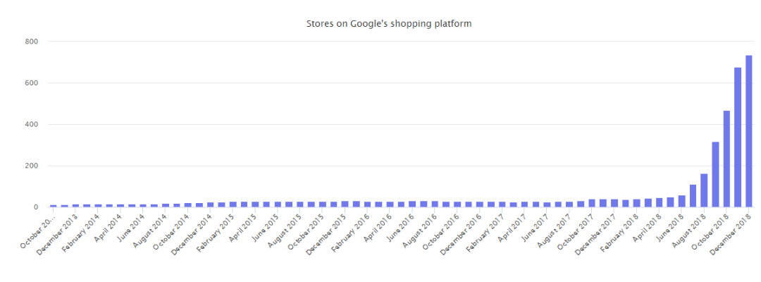 许多人都不知道,谷歌正在准备进军电商市场。20年来,开发购物模式的尝试都失败了。于是选择孤注一掷,即邀请亚马逊、eBay和沃尔玛平台的Top卖家在谷歌上销售产品。11月初,Google Shopping Actions已经超过了500家商店。其中大部分是在过去4个月里增加的。现在,平台上每周还新增30多个商家。这在4年多前,还网站上只有30个商家。
