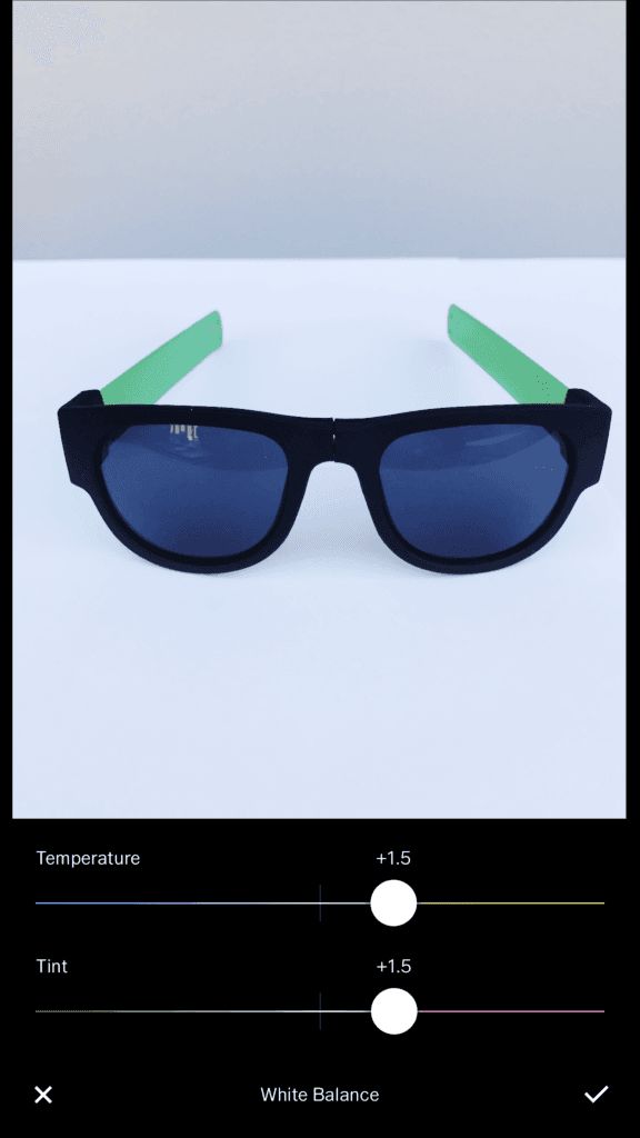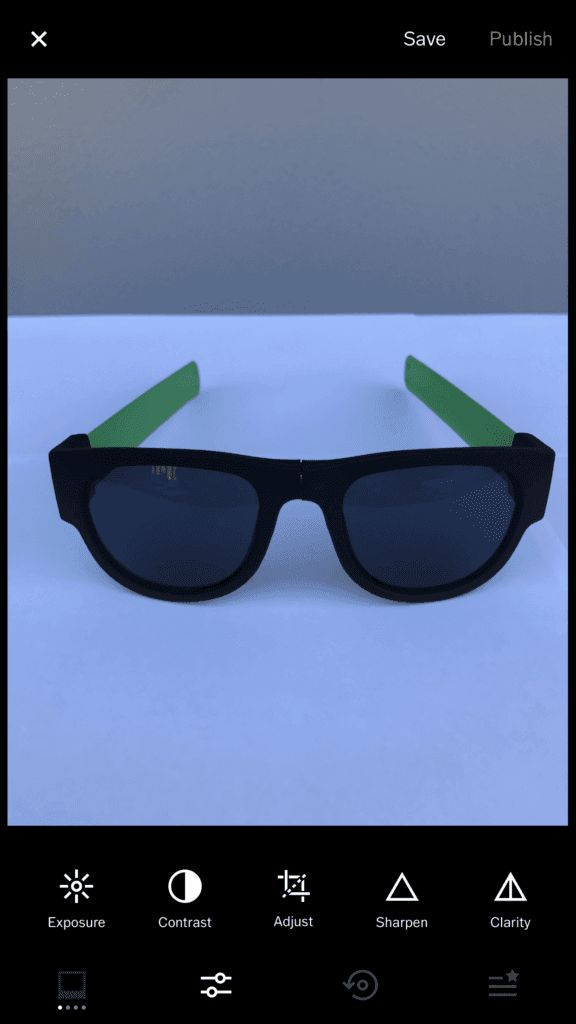 上图是前面提到的设置之后拍摄的产品图片之一。下文将详细引导卖家完成最终结果所需采取的确切步骤。首先要做是让图片更亮一点,一开始图片的色温非常低。为此,你可以使用VSCO的曝光工具,增加曝光。