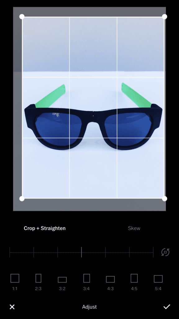 接下来就是要裁剪掉产品周围的一些空白区域,并确保它位于图片的中心,因此可以继续使用VSCO的调整工具。