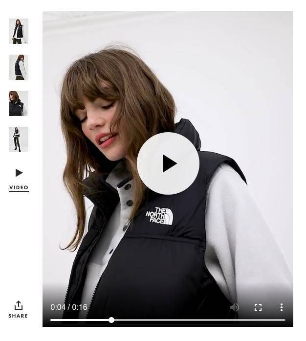 拍摄了5张产品图片突出产品亮点很好,但是要突出更多产品细节可以添加短视频。英国服装电商ASOS就给它们的产品添加了产品视频,可以让购物者了解他们的服装外观和装扮: