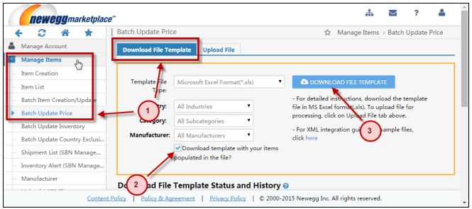 进入 Manage Items(商品管理)>Batch Update Price(商品价格批量更新)>[Download File Template](下载文件模板)