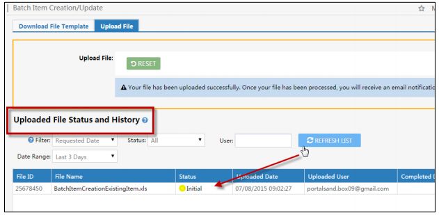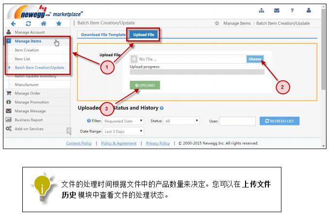 a, 点击进入 Manage Items(商品管理)>Batch Item Creation/Update(商品批量创建和更新)>[Upload File] (上 传文件)