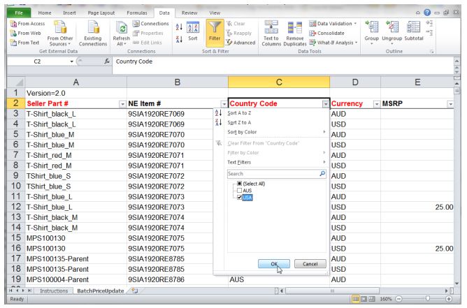 b, 筛选 Country Code 列仅为 USA 的产品信息