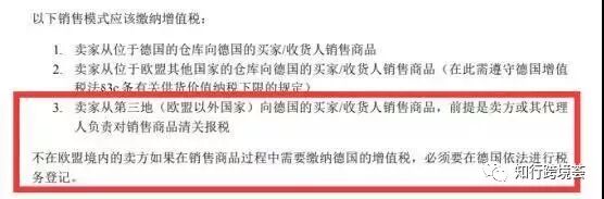 3. 卖家从第三地(欧盟以外国家)向德国的买家/收货人销售商品,前提是卖方或其代理人负责对销售商品清关报税。