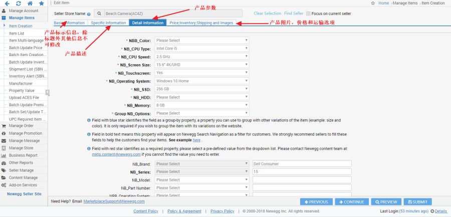 商家们需要注意,根据Newegg国际商城的内容管理政策,在商品创建过程中使用的基本标示信息,商家是不可以修改的。