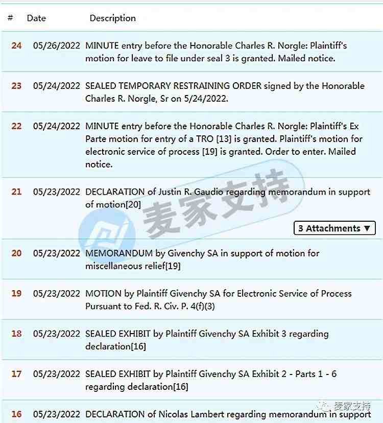 纪梵希(Givenchy)是法国的高奢时装品牌,隶属于法国LVMH集团,主营高级服装定制、成衣、鞋履、皮革制品及饰品,由于贝尔·德·纪梵希(Hubert James Taffin de Givenchy)以自己名字在1953年创立。该品牌的图案较受欢迎,随之而来的侵权现象也层出不穷,代理律所仍是跨境电商圈最知名的律所之一——GBC,该案件进展已更新,麦家支持提醒诸位卖家及时排查下架!