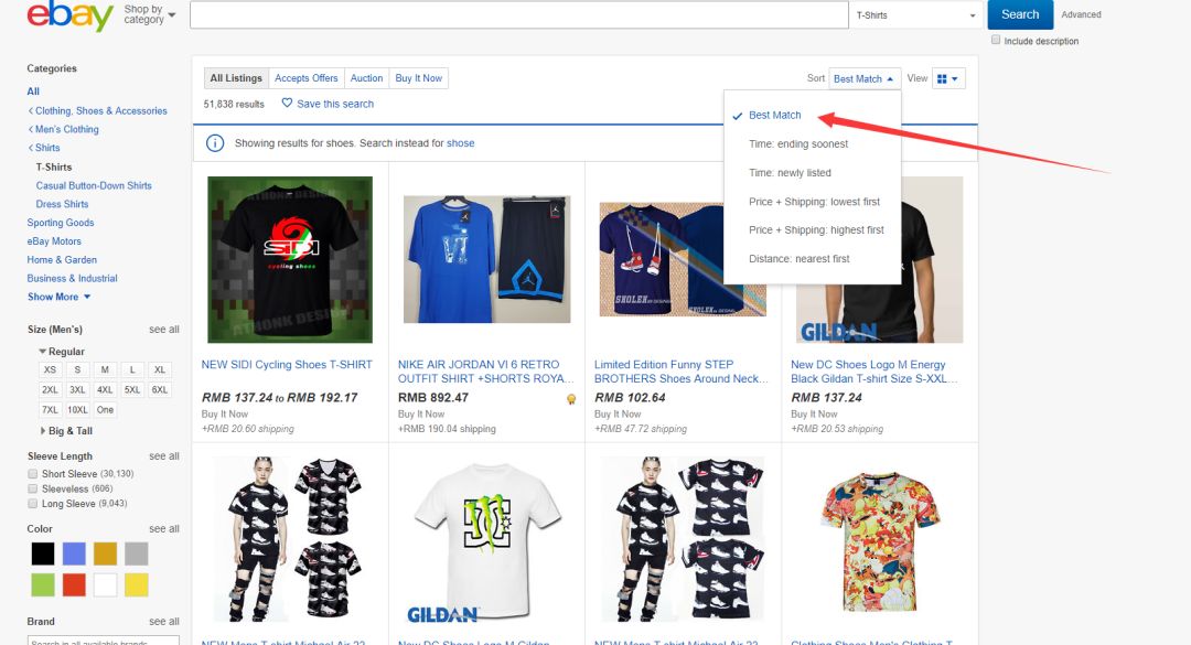 eBay的默认搜索结果顺序为“Best Match”,这基本算是eBay对搜索人想要结果的一种预测。