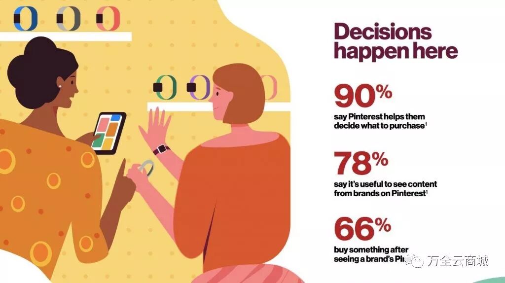 下图的数据来自Pinterest的官方。我们可以看到,有66%的用户在浏览商家的Pinterest图片以后产生了购买行为。
