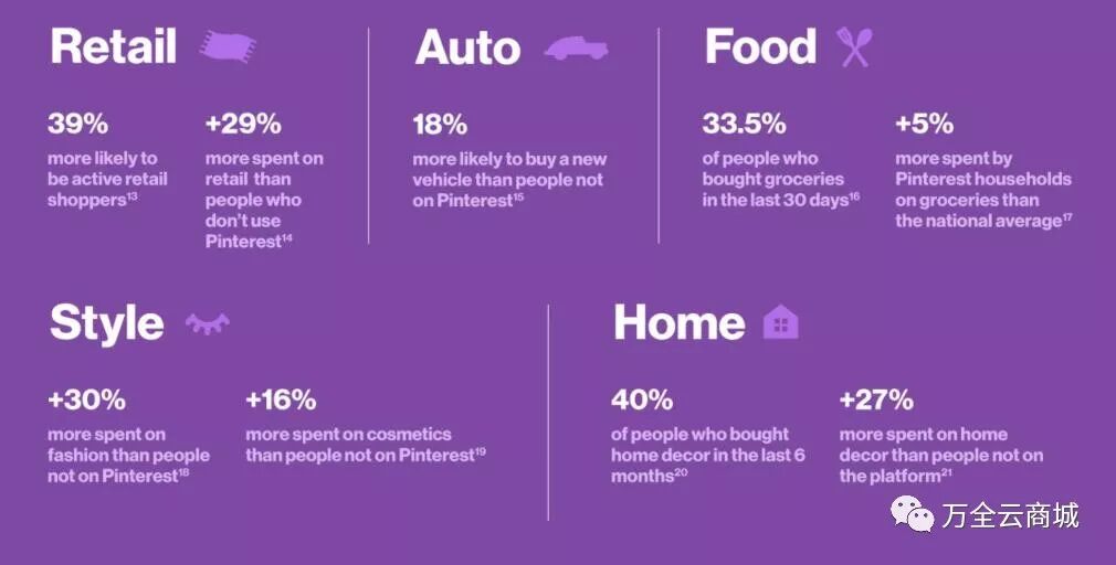 作为目前全球第五大社交媒体平台,Pinterest至今已有超过2亿的活跃用户,来自全球不同的地区、国家。据其官方数据表示,78%的用户表达了品牌的内容很有用且远高于其他平台的想法。