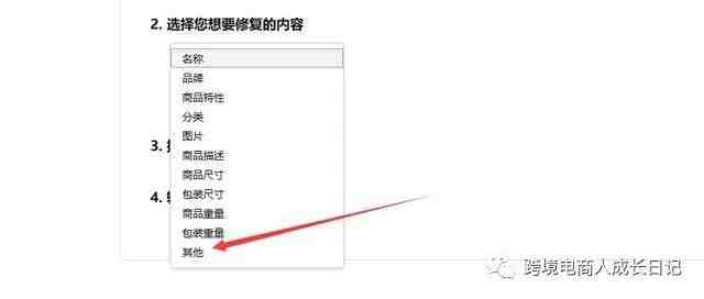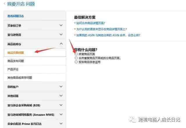 选择“商品页面问题”,选择“修复商品页面”如图: