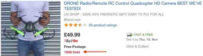 产品平均价格高于20美元。建议卖家在大多数情况下选择价格在20美元左右或更高的产品,因为这些产品的利润空更可观。关于这一数据,卖家可以滚动浏览eBay的lisitng并尝试进行一些手工计算。