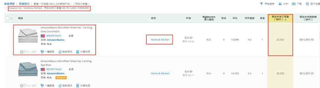 酷仔继续以【Home&Kitchen】大类为例,用BigTracker 后台掌握的真实数据可以看到在该类目的排行,甚至可以预测未来的订单量,商品能不能赚钱,没有销量单个利润再大也是无用的。