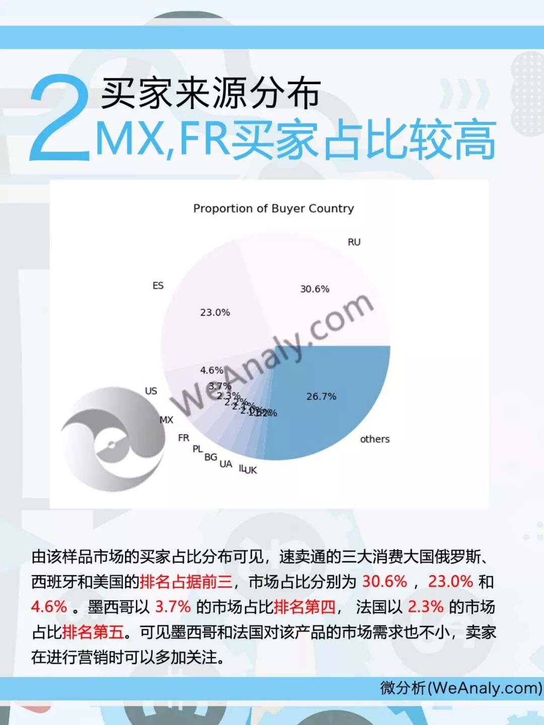 速卖通首个行业数据分析机构 点击关注我们,您将可以得到: 1、不断更新的速卖通行业数据分析报告,覆盖女装、童装、家居、3c和手机配件等多个类目; 2、速卖通店铺监控工具,对手整店销售额、潜力新品,店铺关联选品随时掌握; 3、速卖通排名查询工具,产品流量词入口查询; 4、速卖通销量监控工具,知己知彼,百战百胜; 5、速卖通评论分析工具,深度挖掘竞争对手痛点。