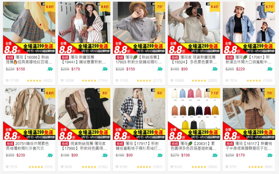 薄荷:就我自己的体会是,目前较年轻化和低价位的产品相对来说更容易出单,了解到Shopee平台大部分用户为年轻女性,且女装在台湾是强势品类,整体表现良好,走韩版女装路线的店铺热销,我就把店铺定位为韩版+高性价比。