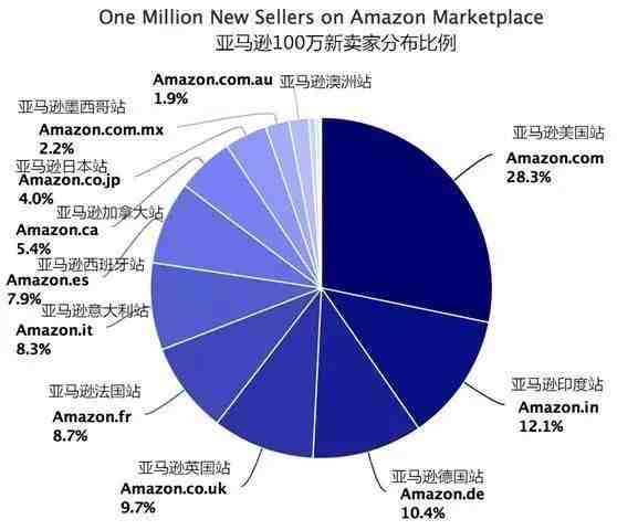 而这些新卖家里头以美国站、印度站和德国站产生的新卖家最多,美国站是亚马逊最大的站点,每天有近1000个的新卖家加入。