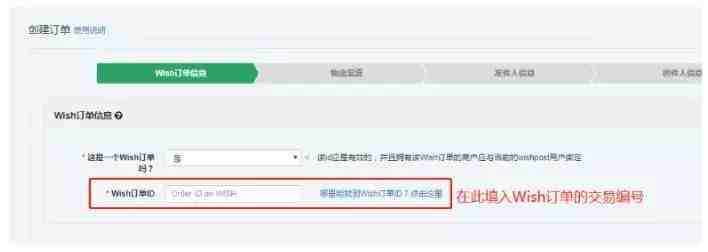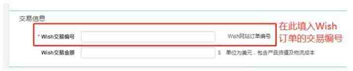 以下为创建Wishpost物流运单的操作示例图,关于填入交易编号的要求;
