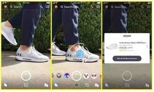 本周一亚马逊与Snapchat在其应用程序上进行视觉购物相关功能的测试,进行视觉搜索引擎购物的合作,简单来说就是Snapchat用户可以用相机扫描现实生活中商品的图像或条形码,比如扫描衣服和化妆品的时候,在Snapchat主屏幕上就会出现弹出式菜单,这些菜单上有来自亚马逊在线商店的购买该产品或类似产品的多个商品链接,以便消费者选择购买。