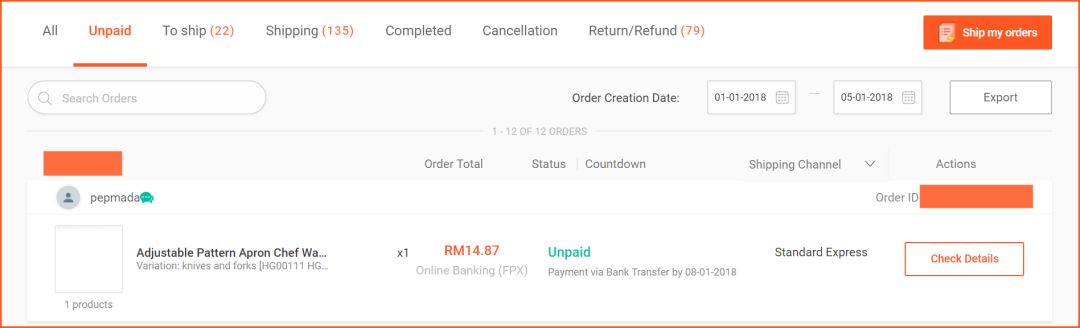 订单状态有多种,理清状态与状态之间相互关联的逻辑,恰当处理每个订单状态是跨境卖家做订单管理的难点。Shopee订单状态有6种,包括未付款、待出货、运送中、已完成、已取消和退货退款~下面为各位跨境卖家一一解读。