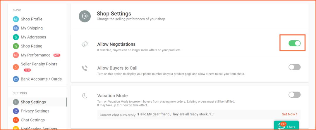 首先卖家要在店铺设置中开启允许议价,买家方可以通过聊聊对商品价格进行商议。当买家提出议价申请,卖家可以在聊聊窗口看到买家的申请,点击即可看到买家提出的最新价格,卖家可以选择不接受或者接受,对买家提出的新价格做出回应。