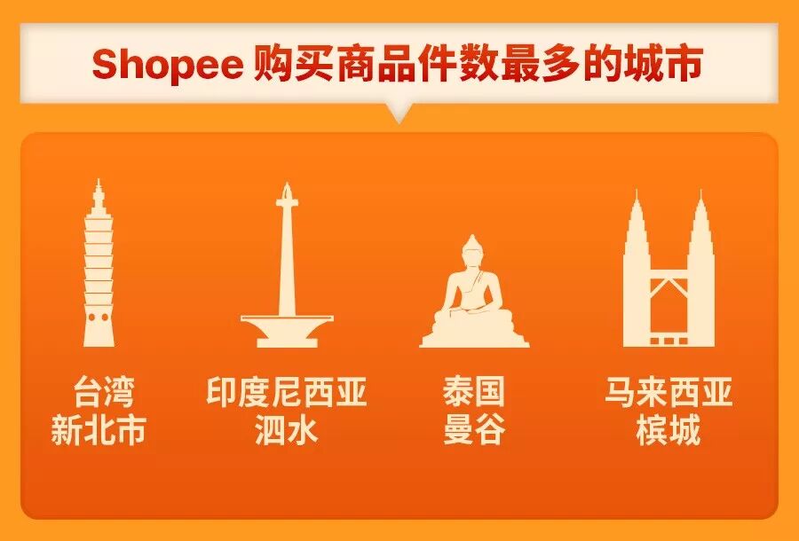 哪里的消费者最会买? 资料显示,台湾新北市、印尼泗水、马来西亚槟城和泰国曼谷的消费者购买商品件数最多。哇,看来卖家们要重点挖掘这些城市的买家噢!